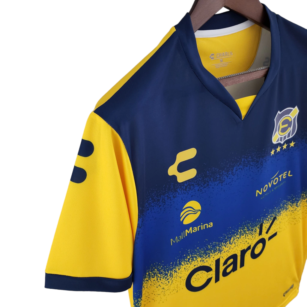 Camisa Everton de Viña del Mar Away II 22/23 - Torcedor Charly Masculina - Amarela com detalhes em azul e branco
