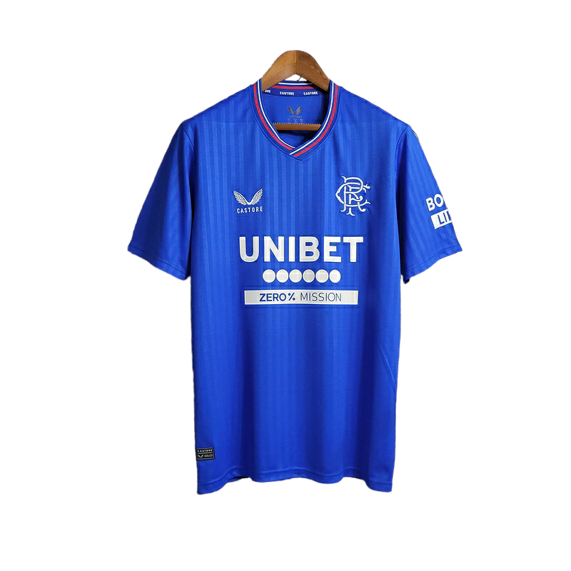 Camisa Rangers Home I 23/24 - Torcedor Castore Masculina - Azul com detalhes em branco e vermelho