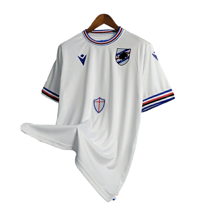Camisa Sampdoria Away II 22/23 - Torcedor Macron Masculina - Branca com detalhes em azul